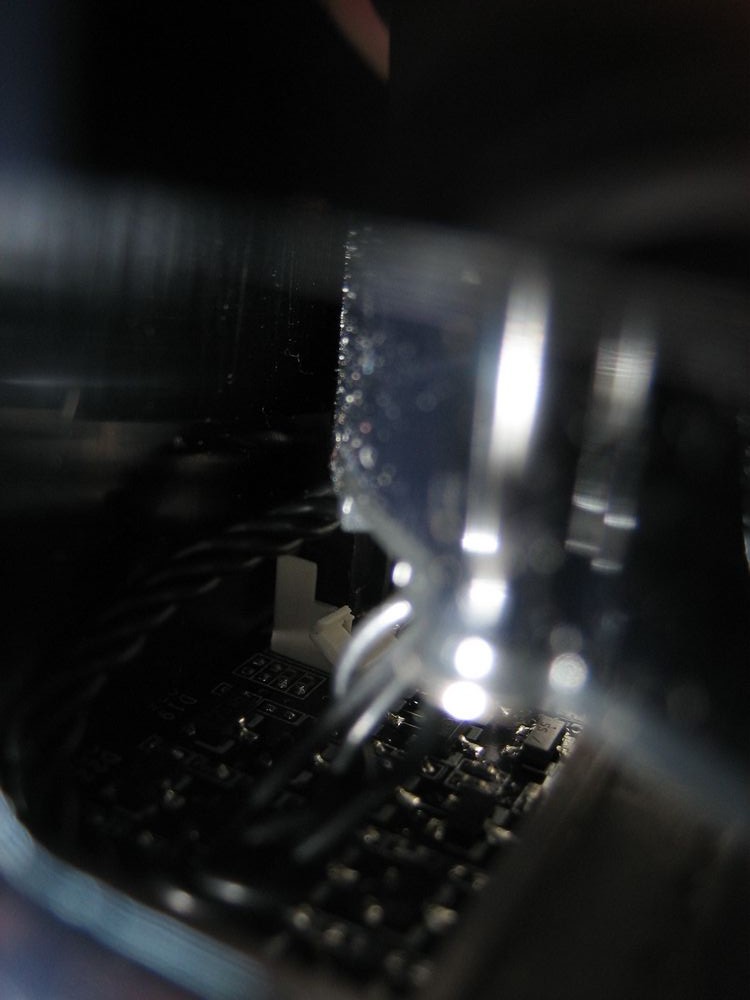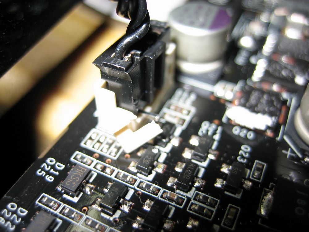 Auf dem ersten Pic sieht man, (leider etwas schlecht) die Sicht durch einen der grösseren Lüftungsschlitze (am hinteren Ende der Karte). Man kann deutlich erkennen, dass mit dem Stecker etwas nicht ganz in Ordnung ist.