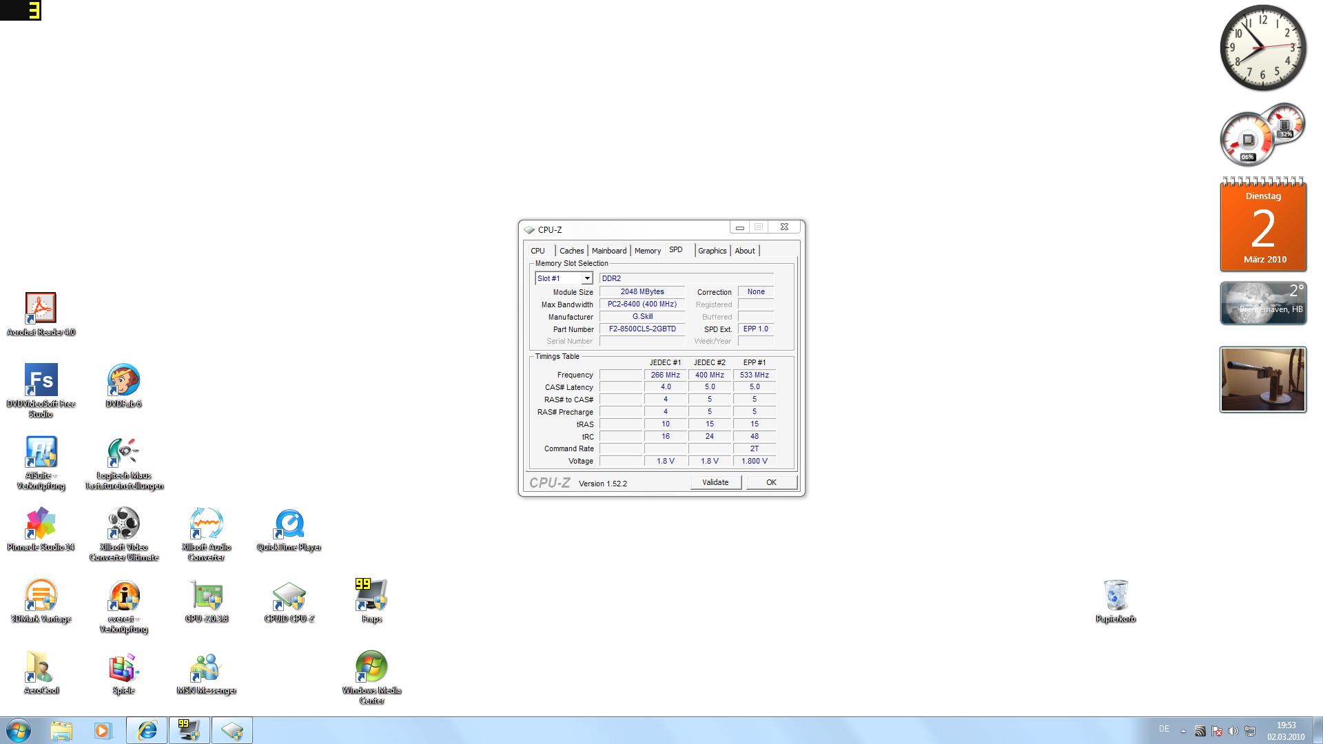 Vielleicht könnt ihr mir ja weiterhelfen, ich habe mir seit Anfang des Jahres einen PC zusammengebaut und als ich die Systembewertung beim Leistungsindex unter Windows 7 durchführte zeigte er mir eine Bewertung von 5,9 für meinen G.Skill 4GB DDR2 Kit mit 1066Mhz an