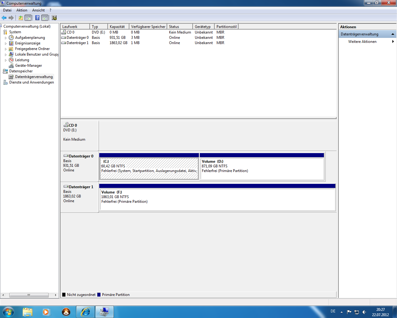 Dennoch wird von den 2 Platten immer nur die in Slot 1 angezeigt egal in welchem Slot die zweite hängt. Die zweite hat immerzu Aktivität ist aber nicht zusehen, auch nicht in der Datenträgerverwaltung.