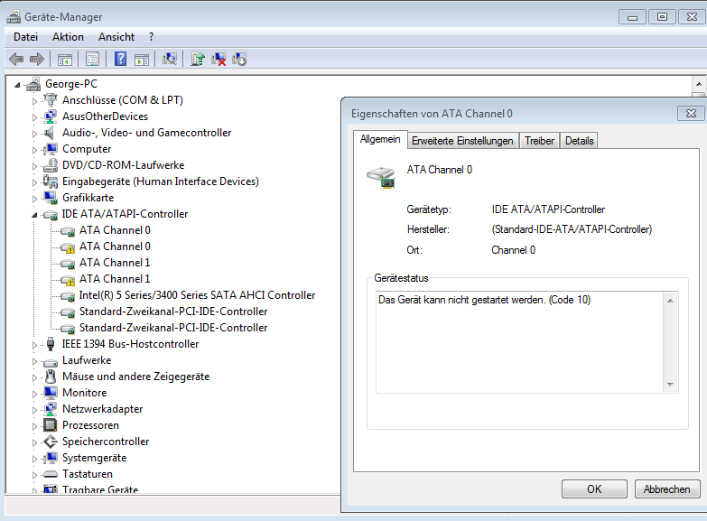 Wenn ich mir die Eigenschaften ansehe kommt, kommt, Gerät kann nicht gestartet werden.