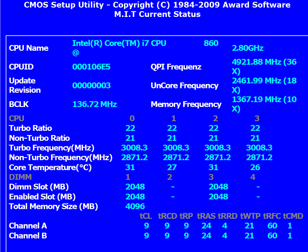 hab ein (so empfinde ich das zumindest) seltsames Problem. Hab heute den PC zusammengeschraubt (Komponenten siehe unten) und 4x2gb Riegel DDR3-Ram verbaut. Mainboard meckert nicht, der Speaker fiept nur 1x kurz, es werden aber nur 4gb Ram erkannt. Im Bios wurde noch nichts verstellt, der Ram wird von den Timings her auch richtig erkannt. Wenn man sich im Bios das System anzeigen lässt, sieht man auch, dass in jedem DIMM-Sockel ein 2gb-Riegel Ram steckt. Die Speicherbausteine in den Sockeln 3+4 werden aber nicht bei als enabled gelistet - daher komm ich nur auf 4GB statt 8GB. Wenn ich nur 2 Bausteine verbau (in Sockel 1+3 für Dual Channel) bekomm ich nur 2GB, da der RAM im 3. Sockel wieder nicht erkannt wird. Wie ich es auch dreh oder wende, nur in den ersten beiden Sockeln funktioniert der RAM.