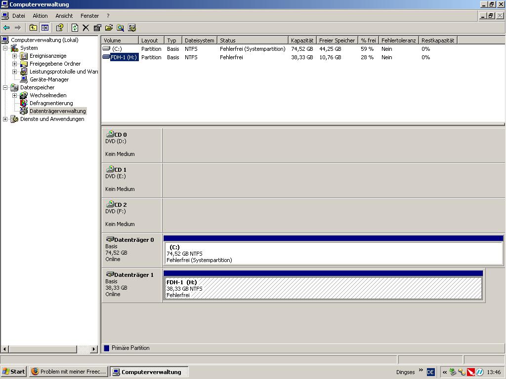 Mittlerweile geht das schon wieder, d.h., sie wird erkannt und als Festplatte im Arbeitsplatz angezeigt. Will ich nun aber auf sie zugreifen, dann hängt sich alles auf, ich muss das Fenster via Task-Manager schließen, und die explorer.exe startet sich neu. Und das stresst mich gewaltig, dass ich nichts mehr mit ihr machen kann...von daher hoffe ich einer von euch kann mir da helfen.