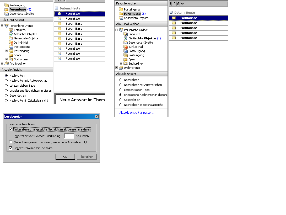 Ich habe neulich das Outlook 2003 eingerichtet und konfiguriert. Das senden und empfangen der E-mails hat auch funktioniert, jedoch nur 2 mal. Mich hat es verwundert,dass keine neuen E-mails mehr eingingen aber als ich mich im Extranet eingeloggt habe mit I.E wurden mir 5 neue E-mails angezeigt, die im outlook nicht runtergeladen wurden. Wie kann das sein das er einmal E-mails empfängt und danach keine aktuellen mehr downloadet? an den einstellungen kann es daher ja nicht liegen, denn sonst hätte er ja keine gedownloadet. Aber hier trozdem mal die konfi Daten für die zwei Konten.