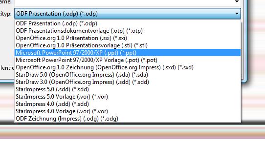 ich habe OpenOffice, damit kann man ja sehr viel machen unter anderem eine Powerpoint Präsentation erstellen. Ich musste das nun für die Schule tun, doch da wird die Datei nicht erkannt. Woran liegt das?
