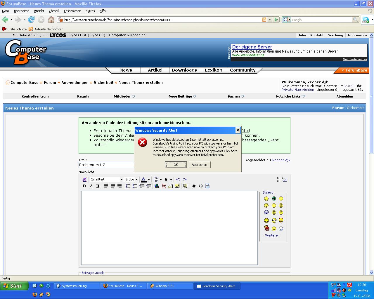 EDIT:jz öffnet er dauernd irgendwelche seiten wo ich "angeblich einen Virus habe" und ich was runterladen soll, was natürlich ne falle ist
