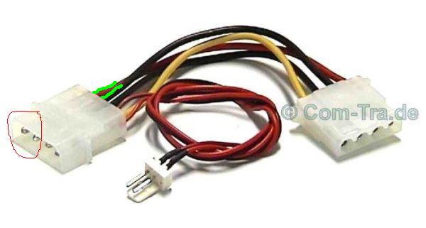 Ein normaler Stromstecker (z.B. für HD) hat 4 "Köpfe". Ein Lüfter, der eben nicht geht, hat nur 2 Köpfe.