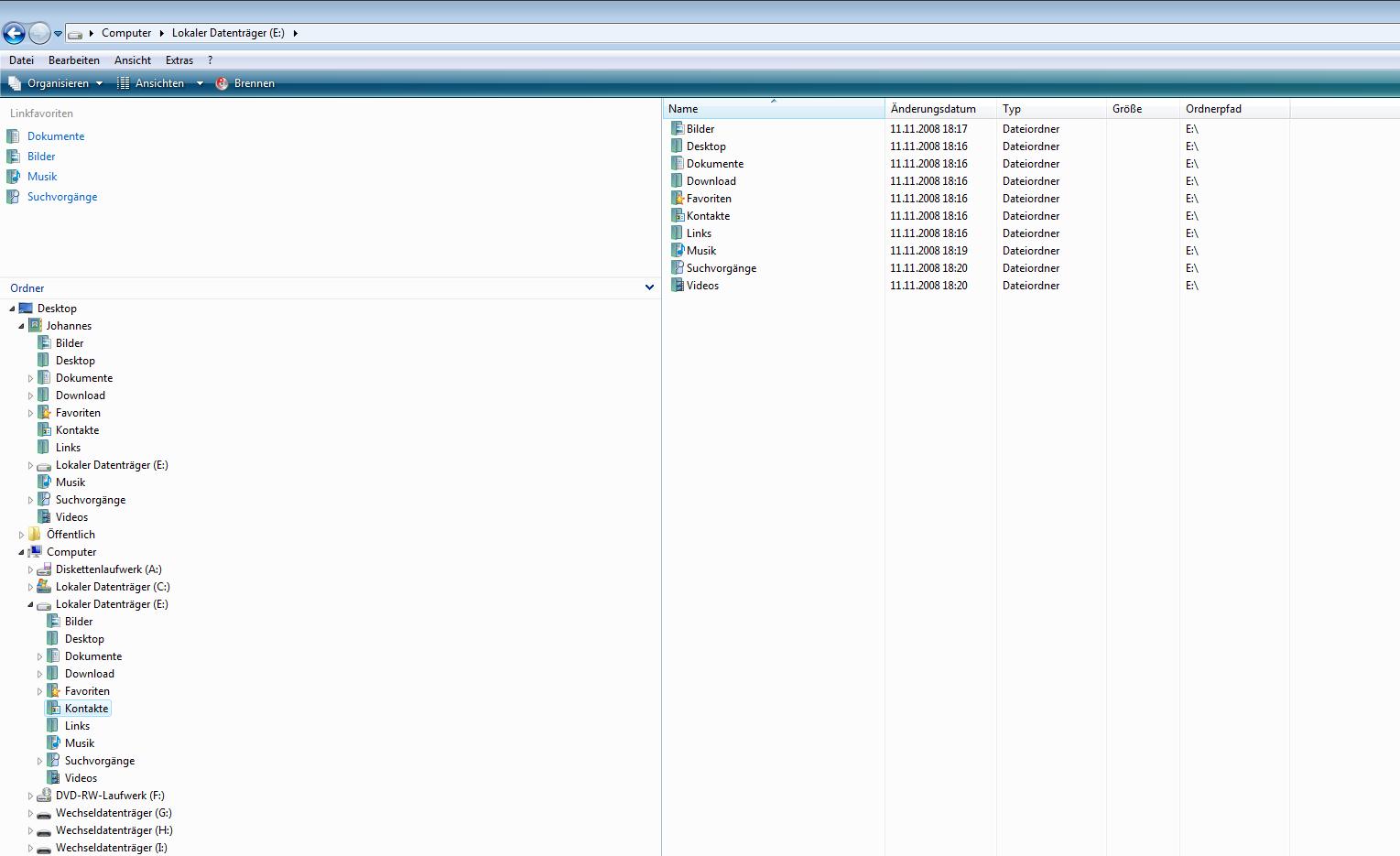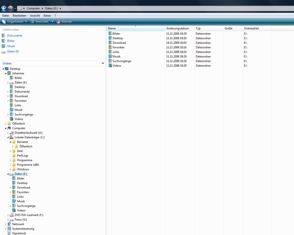 Den ersten hab ich mit Ziel suchen geändert. Hab Laufwek E: eingegeben und jetzt hab ich wie im Screenshot ersichtlich dieses Laufwerk E: stehen, anstatt dem verschobenen Ordner. Rückgängig machen kann ichs nichtmeh, da kommen eine Errormeldung: Systemvolume kann nicht gelesen werden...