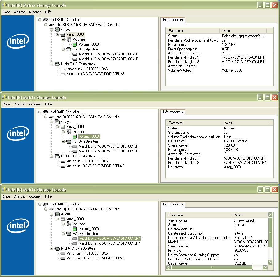 Hab die Platte an mein System (Asus P4P800-X, Maxtor DM9 Sata, P4) angeschlossen.