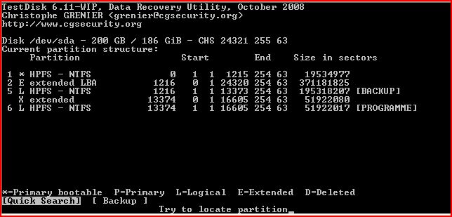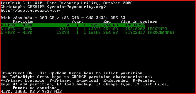 Die Bilderchen von PM und Testdisk habe ich mal angehängt.