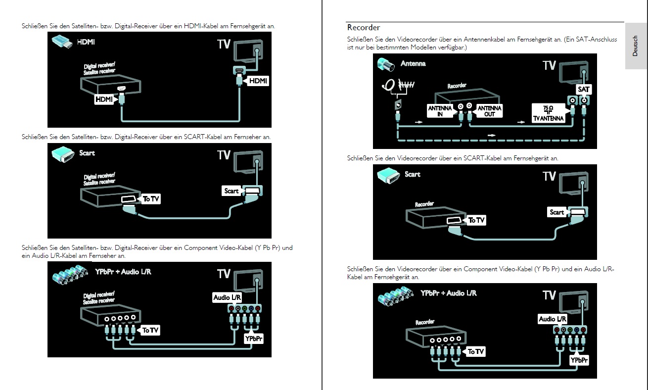 Meine Eltern haben jetzt dann auch mal auf einen LED Fernseher umgestellt wegen der Abschaltung des analogen Signals. Der Philips 40PFL5806k/02 ist es geworden. Hat einen integrierten DVB-S2 Receiver. Da, vor allem meine Mutter, allerdings auch manchmal irgendwelche Sendungen per VCR aufnimmt soll der natürlich auch laufen. Ich hab ihn per SCART an den TV angeschlossen und außerdem ein Antennenkabel vom VCR in die Dose in der Wand und vom VCR zum Antennenanschluss des TV.