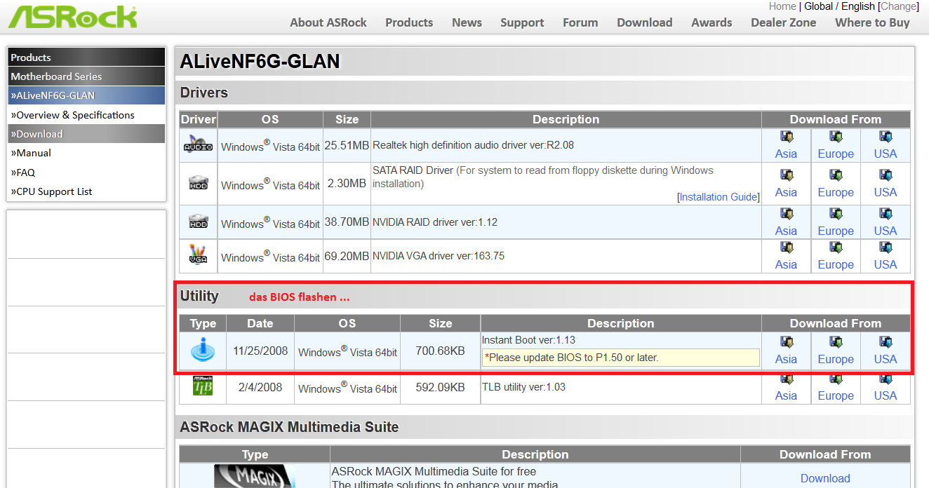 Es ist eben ein ASROCK und ASROCK läßt schnell die Update Unterstützung bei seinen Boards fallen.