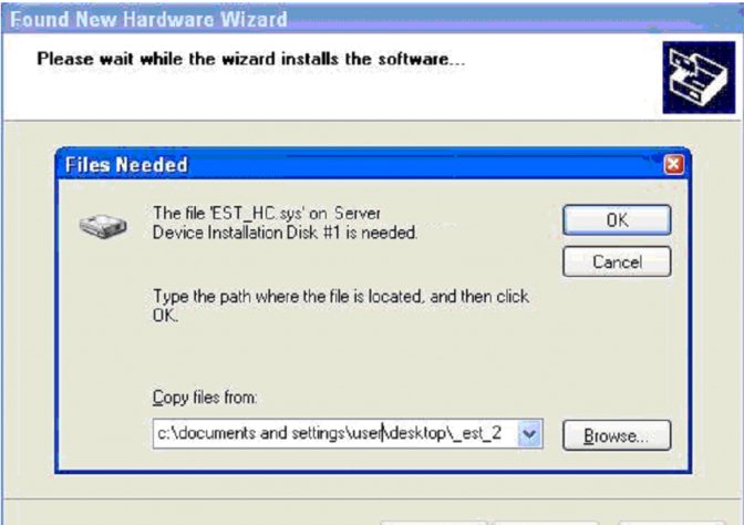 In der Bedienungsanleitung fand ich einen Hinweis auf die benötigte Treiberdatei "EST_HC.sys". Diese ist nicht auf der Festplatte oder CD. Ein extrahieren der Datei aus der EXE-Datei auf der CD ist auch nicht möglich.