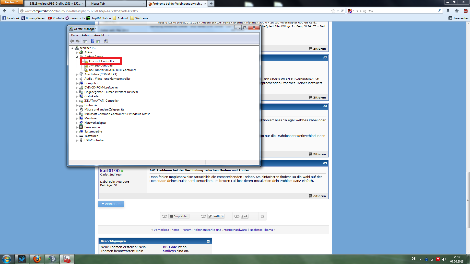 Habe jetzt oben allerdings einen zweiten PC, den ich bisher über WLAN betrieben habe um ins Internet zu kommen.