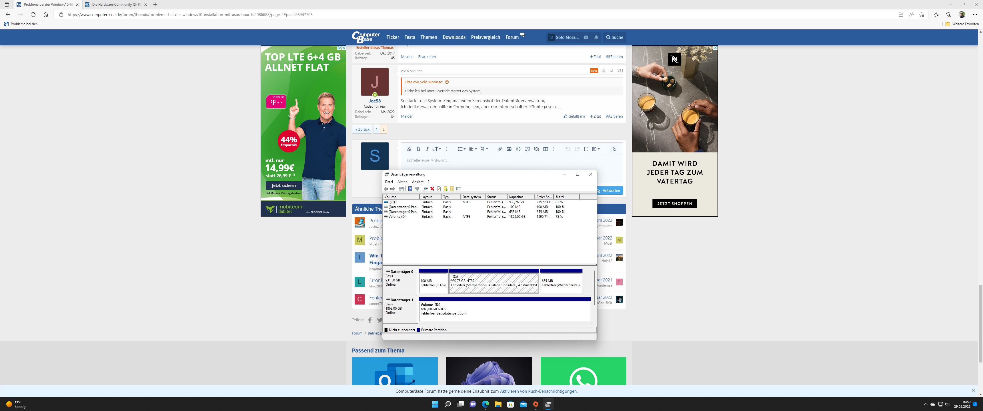 So startet das System. Zeig mal einen Screenshot der Datenträgerverwaltung.