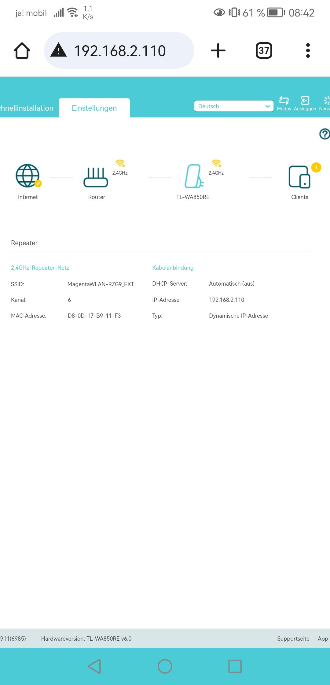 Anbei direkt DOCSIS des Routers und ipconfig