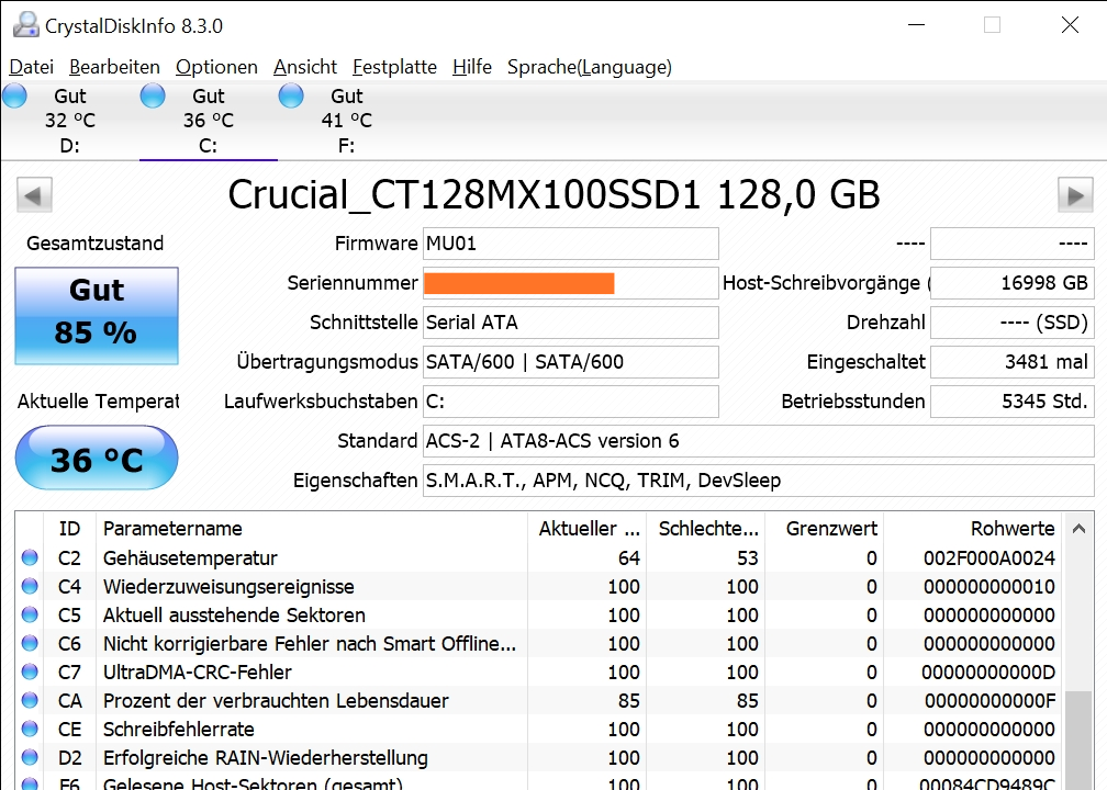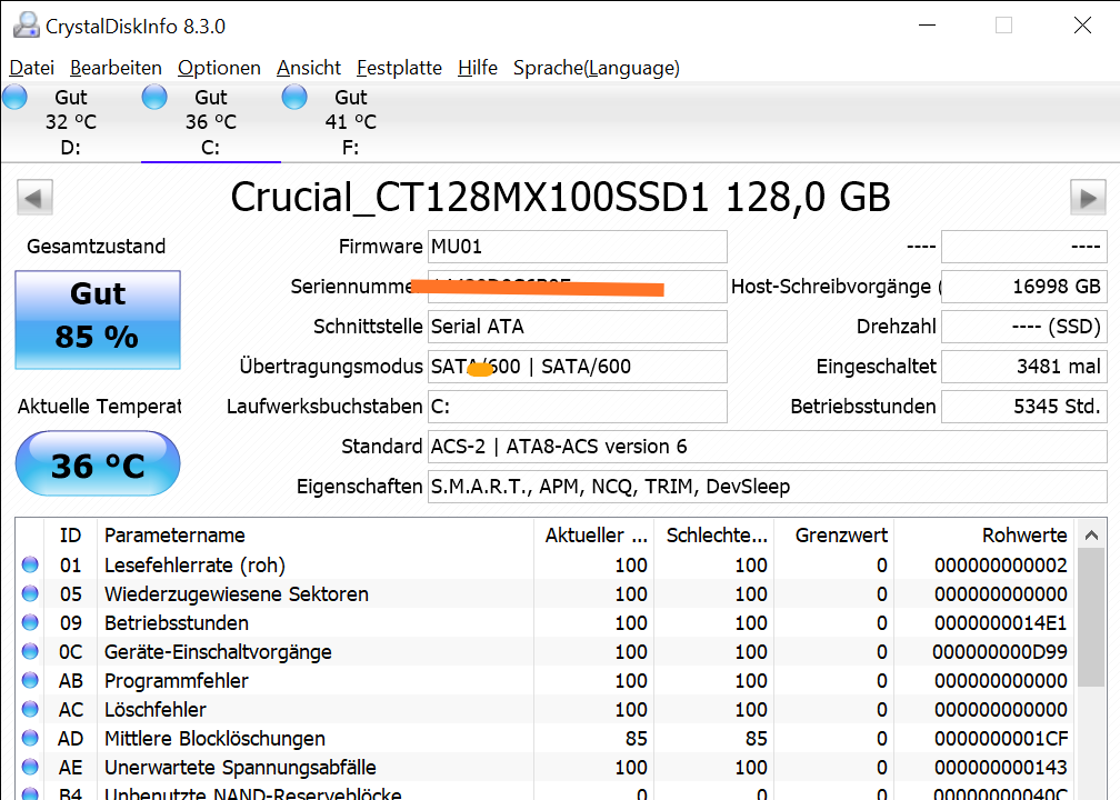Und die Festplatte ist eine alte SSD aus dem vorherigen PC. Bx500 240gb