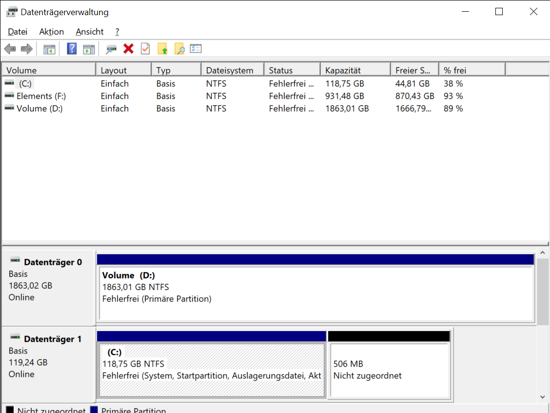 Siehe Datenträgerverwaltung von gestern.