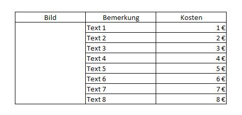 Das Bild in der ersten Spalte soll hierbei über 8 Zeilen gehen. Wie kann