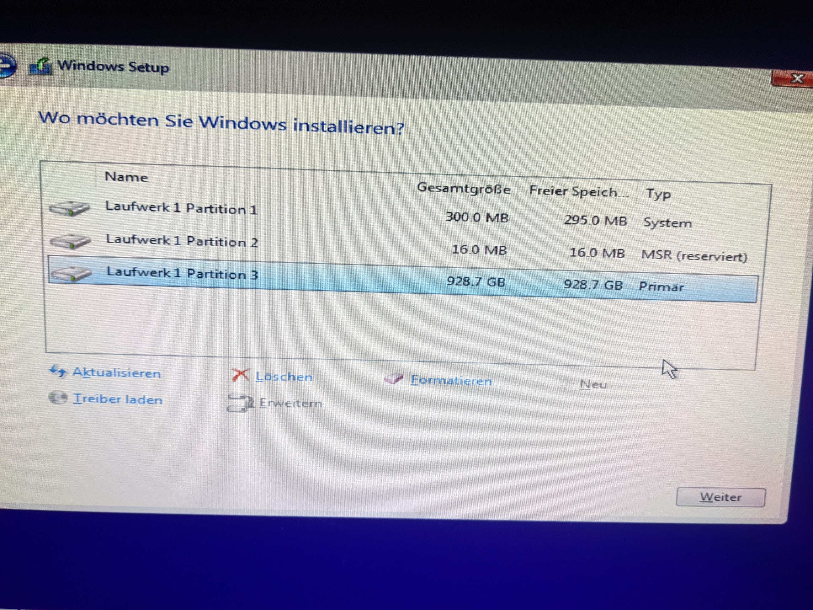 Hallo, ich habe Probleme Windows zu installieren.