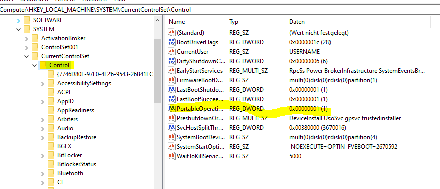 HKEY_LOCAL_MACHINE\SYSTEM\CurrentControlSet\Control prüfen