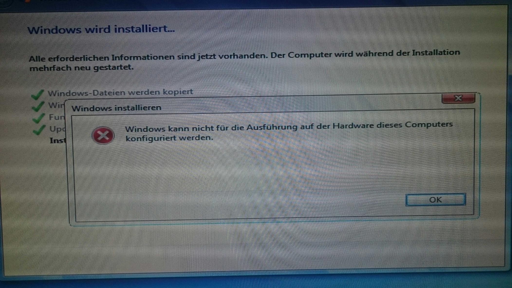 Ich versuche gerade über den usb Stick windows 7 neu zu installieren.