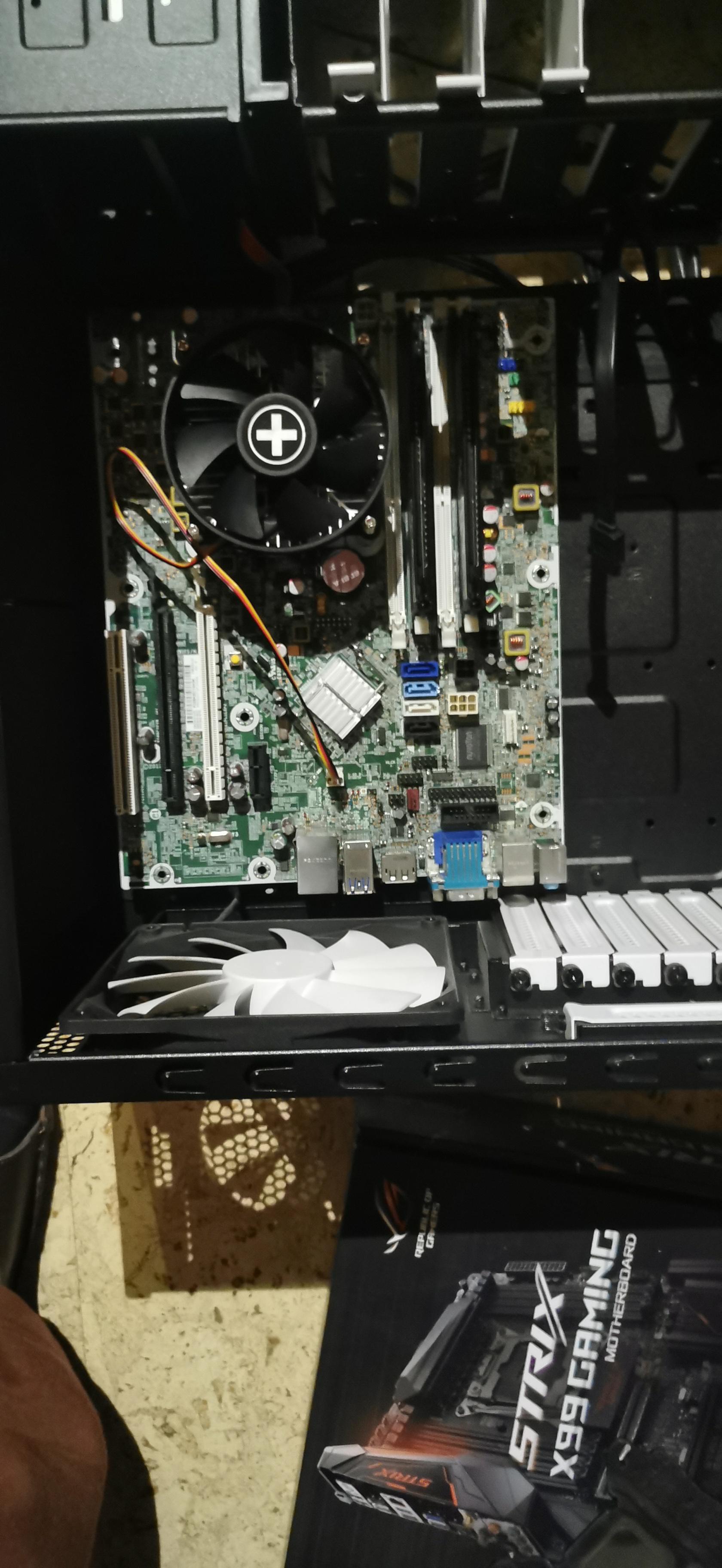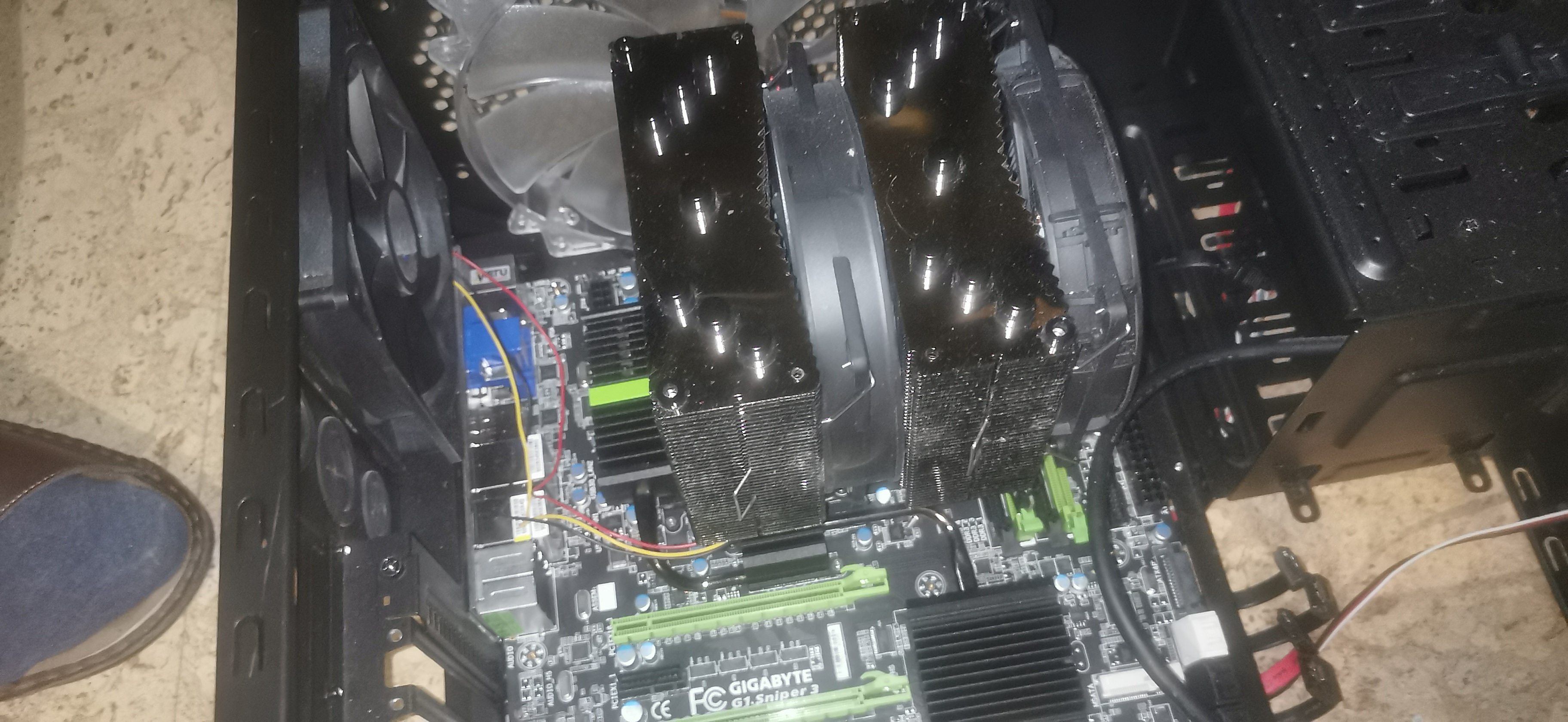 ...Letztes Jahr ist mein Mainbaord Kaputt gegangen. Sonst macht es ja mein Bruder nur der hat halt bis Ende nächstes Jahre keine Zeit. Darum wollte ich den Pc zerlegen. Dabei stoße ich auf einige Probleme ,die ich wohl alleine nicht schaffe. Habe alle bis auf einer Schraube vom Mainbaord lösen können. Die letzte schraube befindet sich leider hinterhalb des Luftkühlers. Der Luftkühler ist geklipst, allerdings nur zur hälfte. Also kann es nicht ganz lösen. Ich sende also alle Bilder die von meinem Pc. Damit ich hilfe bekommen kann. Will bis auf das Mainbaord alle Bauteile wieder verwenden. Der Rest bis auf das Gehäuse ist schon alles aus dem Gehäuse entfernt worden. Es befindet sich also nur noch das im Gehäuse.