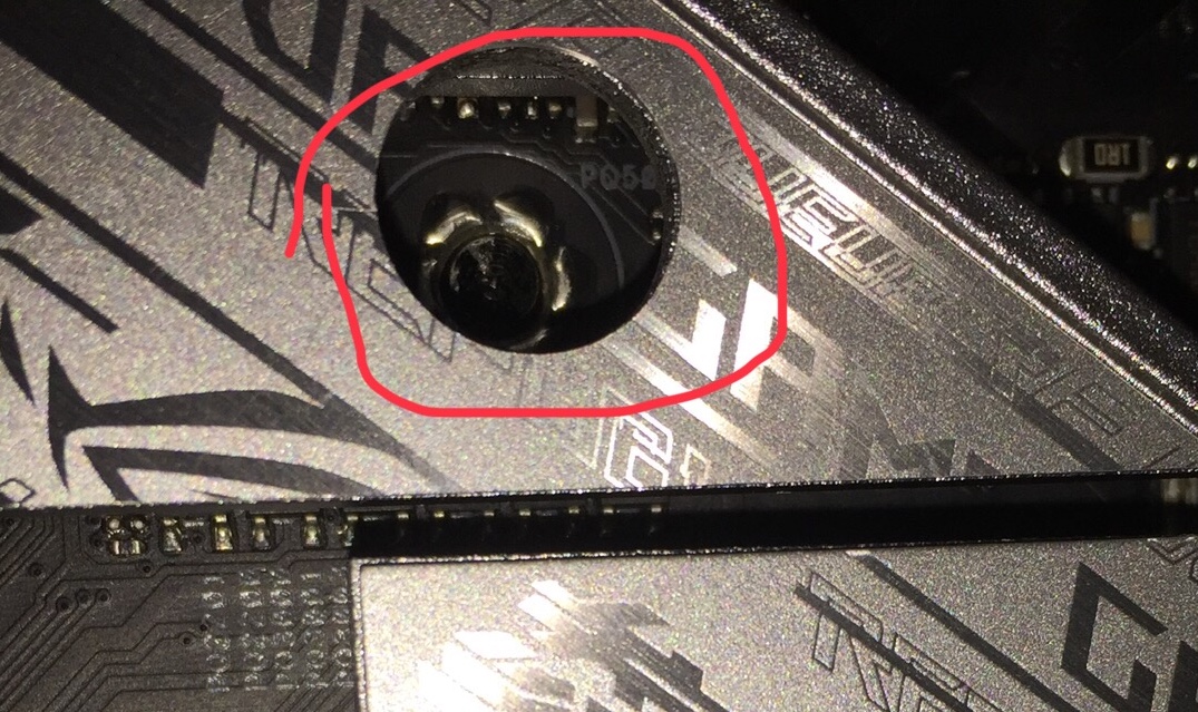 Sorry, hattest natürlich Recht. Habe die Schraube an der unteren Kante des Board eingeschraubt. In dem, auf deinem Bild rechten, Gewinde ist bereits ein Stift von der Gehäuseplatte (siehe Bild)