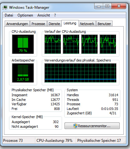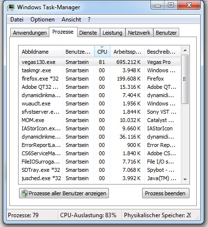 Screen vom Taskmanager beim abspielen der Videos in Sony Vegas: