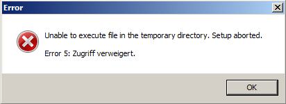 Irgendeine Software, wahrscheinlich ein AV Programm unterbindet das ausführen von Programmen in TEMP Verzeichnissen. Von dort startet die meiste Schadsoftware.