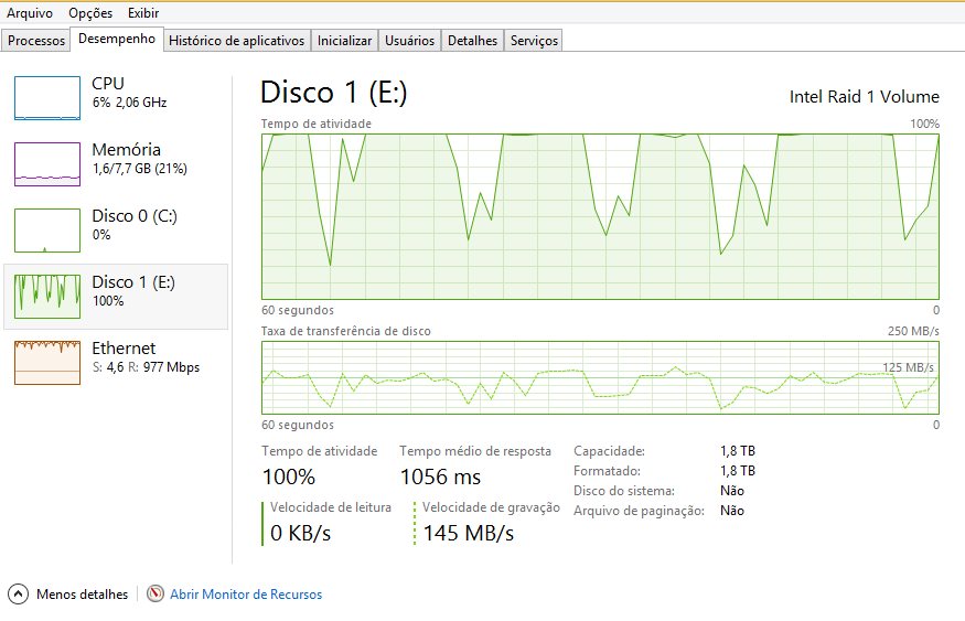Das Raid 1 ist dann zu 100% ausgelastet aber schreibt nur noch mit 2Mbit/s. Der Windows 7 Rechner und der Lan langweilen sich.