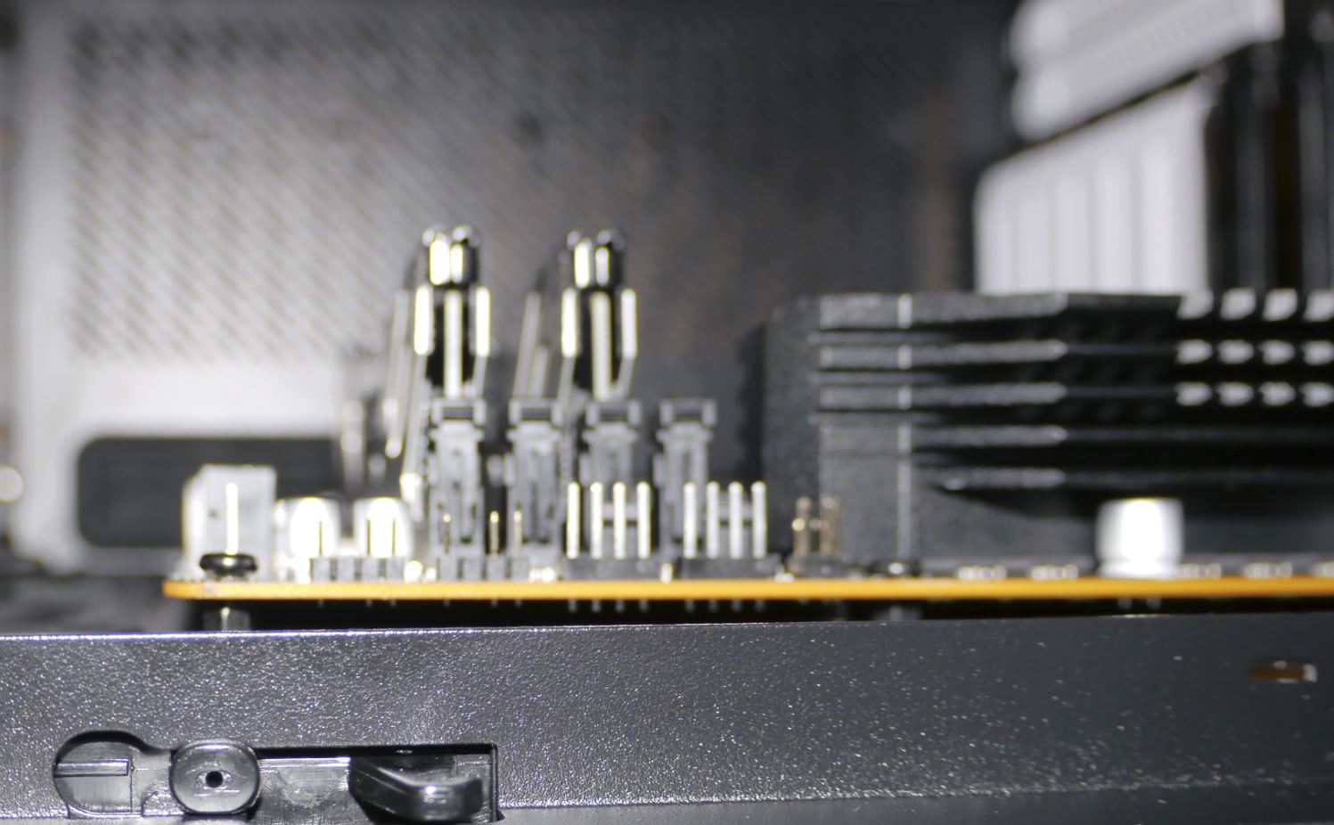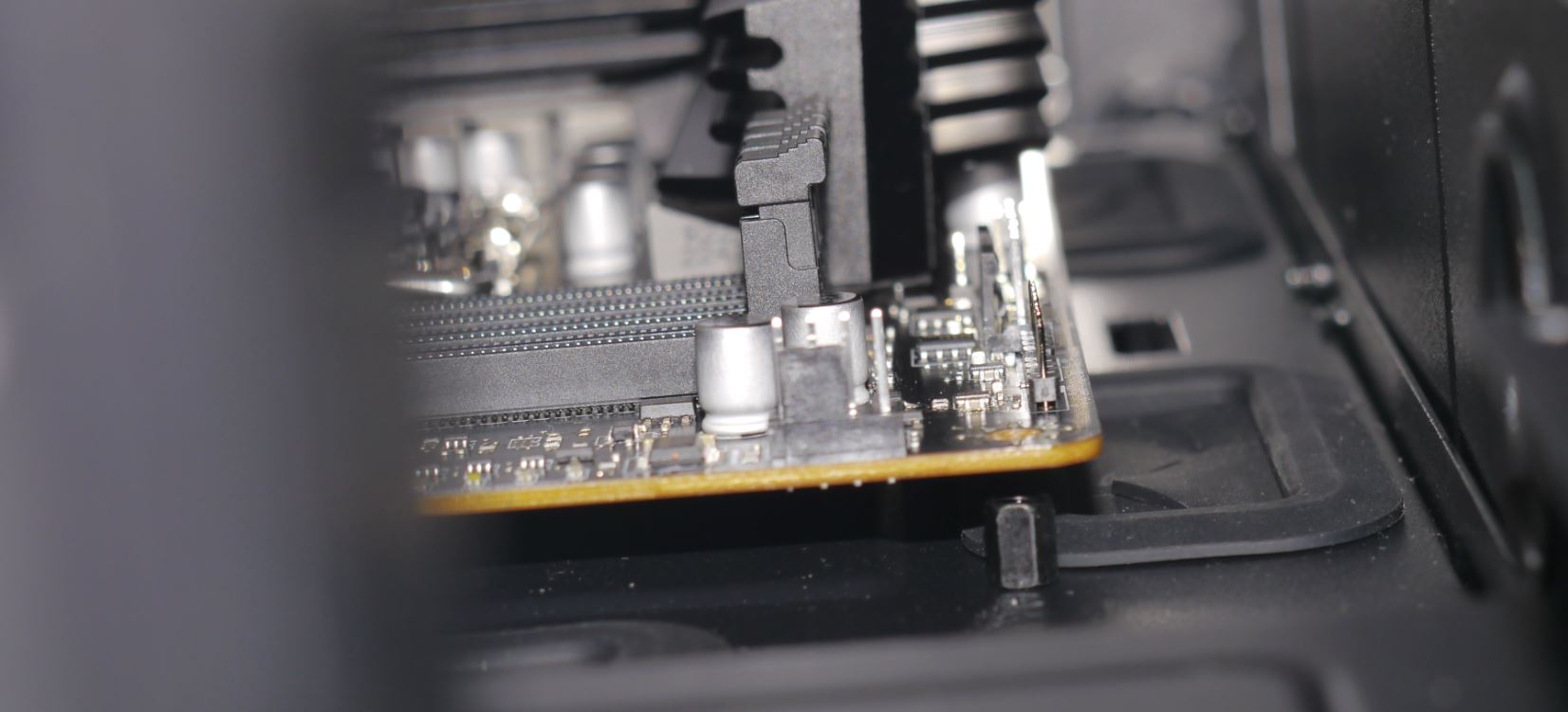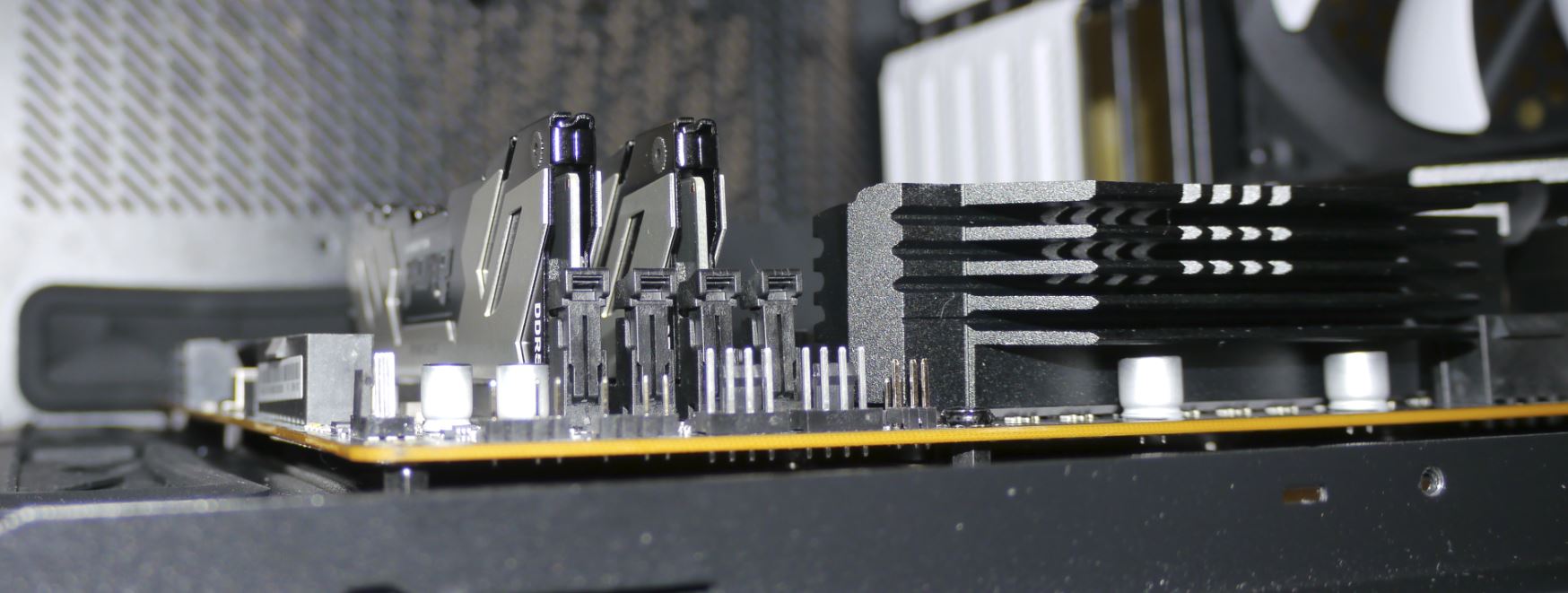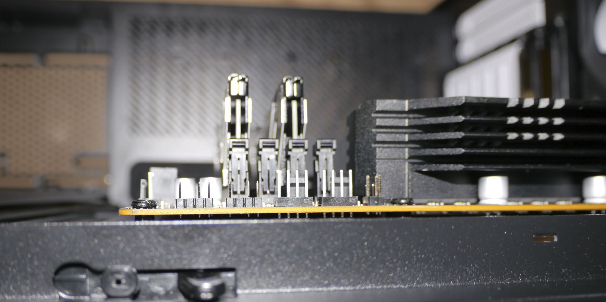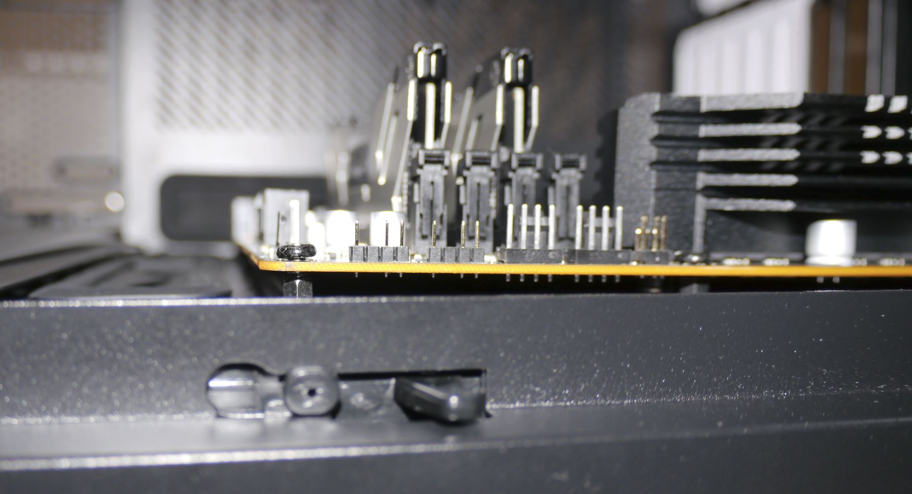 Hatte bei dem Einbau des ASRock Z370 Extreme4 ins gleiche Gehäuse R6 (in weiß, Standard Layout) damals keine Probleme.