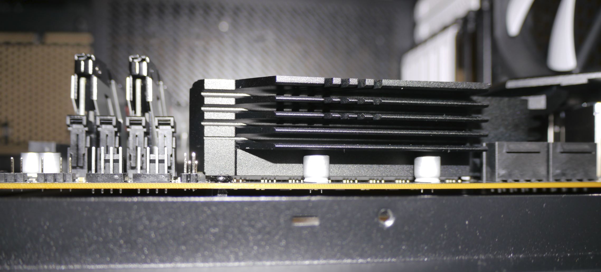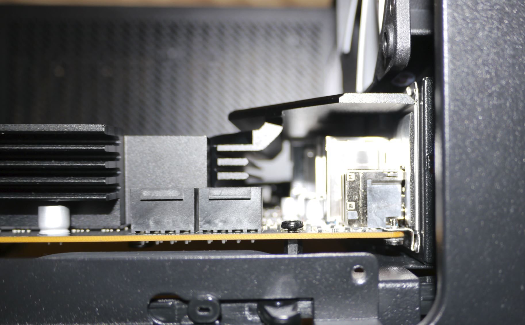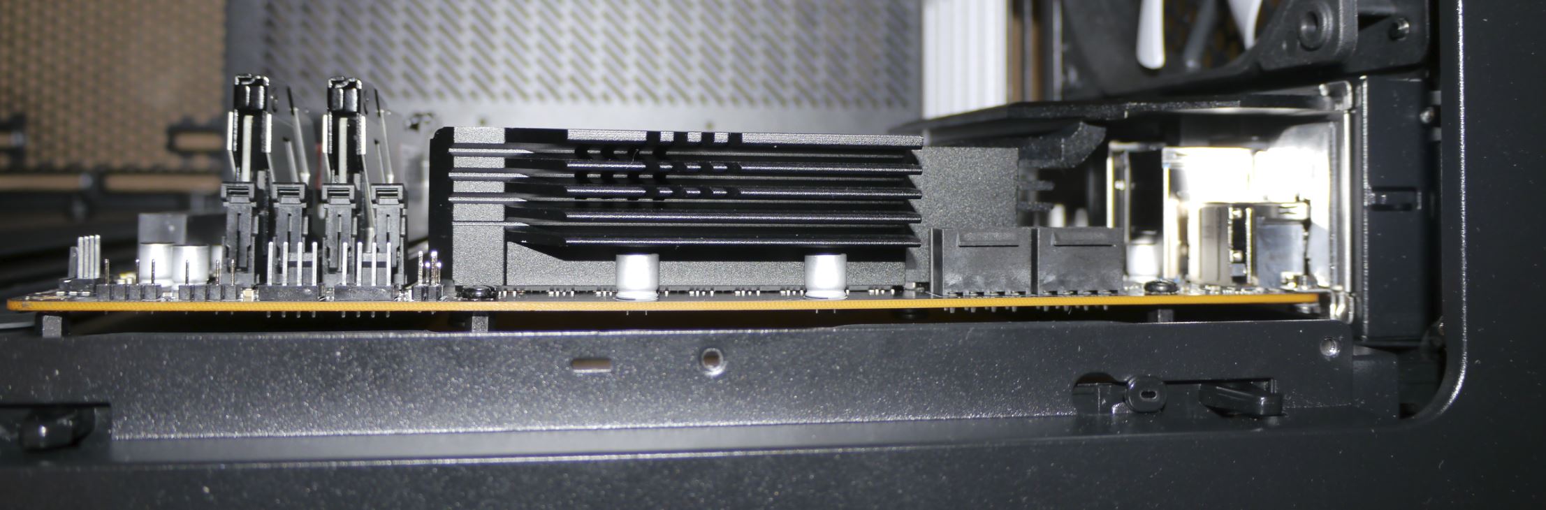Dann Seitenwand abgenommen, Gehäuse gerade hingestellt (Mainboard senkrecht), und alles Schrauben nochmal gelöst, gedrückt und wieder verschraubt. Sah dann plötzlich alles besser aus, nicht mehr so schief. Kann ich es so lassen? Eine Ecke steht noch 2 mm ab: