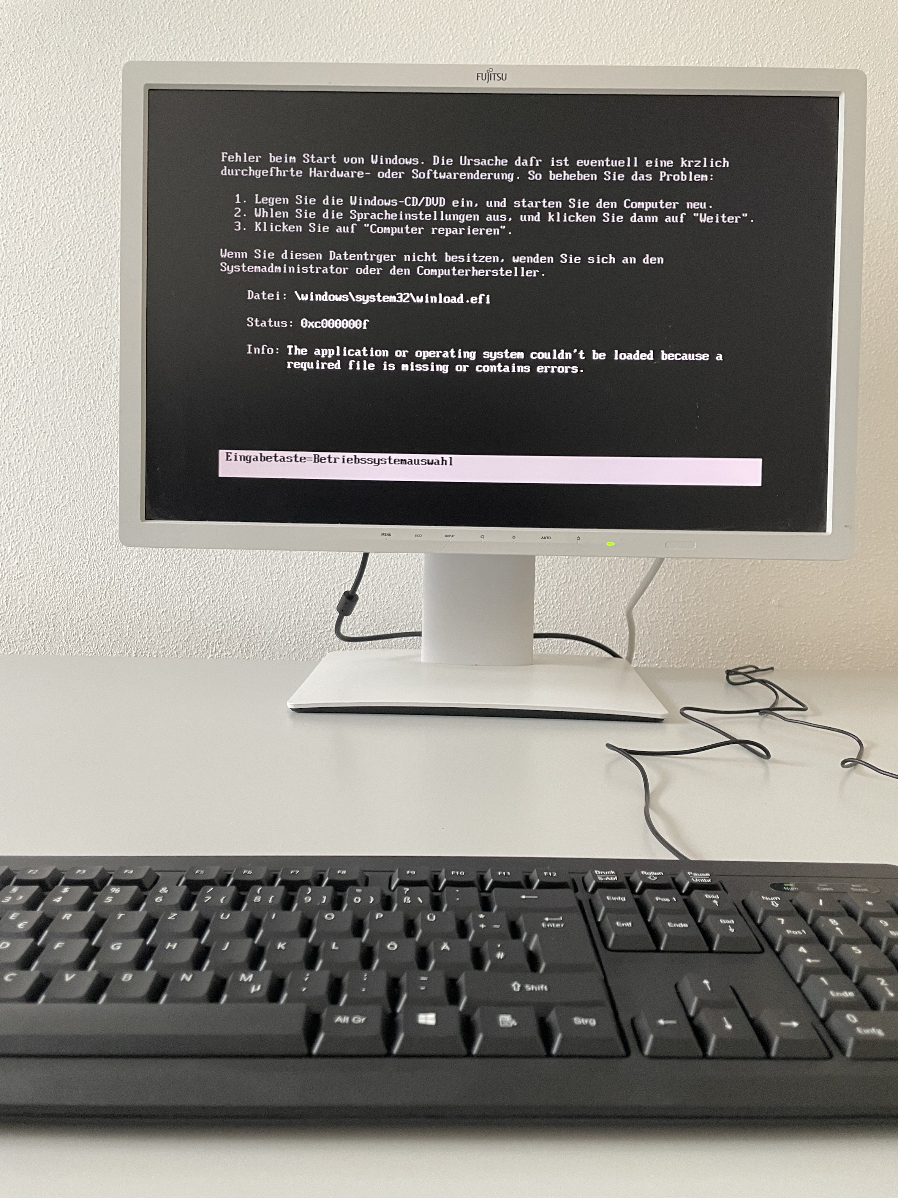 Als ich den Rechner Dell Optiplex 990 zum ersten Mal gestartet habe, kamen die Fehlermeldungen in den angehängten Bildern ("INACCESSIBLE BOOT DRIVE"; "Datei: \windows\system32\winload.efi Status: 0xc000000f") und ich bin nicht weitergekommen.