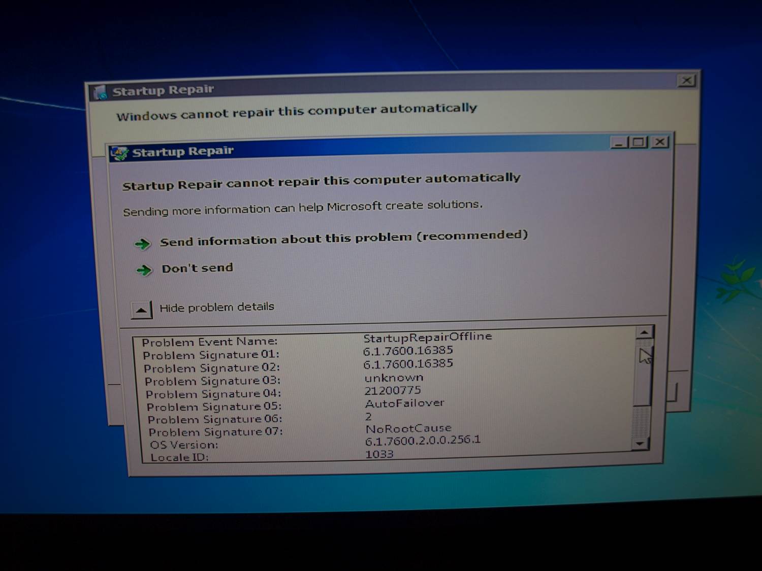 Während des gestrigen Surfens im Internet fuhr mein Desktop schlagartig herunter. Bei dem Versuch eines Neustarts erscheint nun während des Ladebildschirms für Windows 7 der im Anhang als Foto beigefügte Bluescreen und der Rechner versucht erneut hochzufahren - mit demselben Ausgang.
