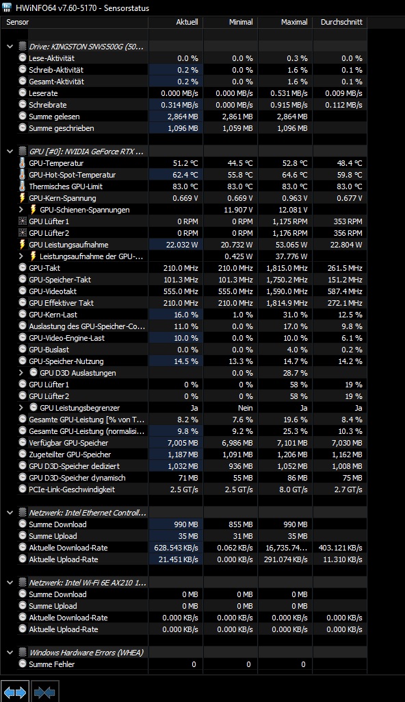 Ich füge mal die HWinfo (nur Sensoren) mit ein.