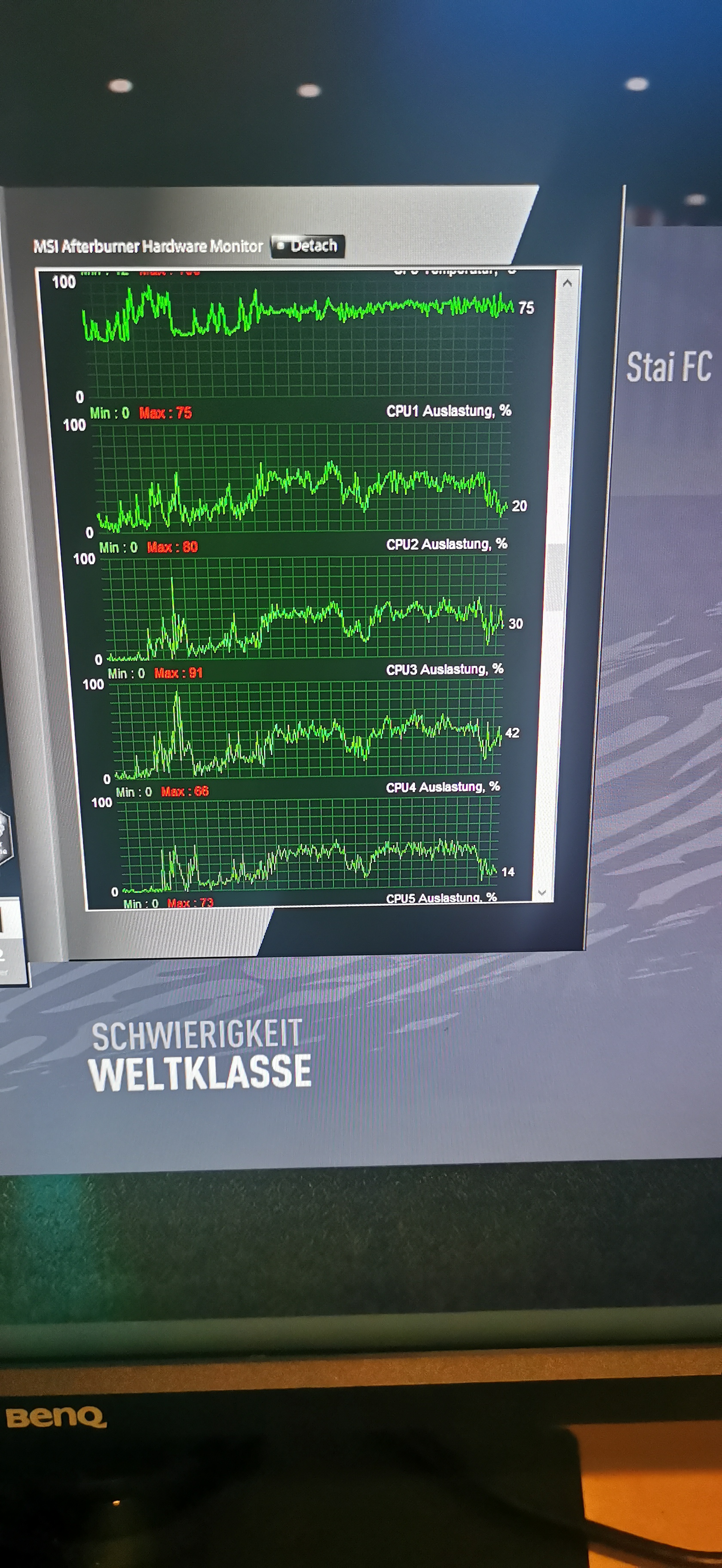 Ich hab ein Problem mit meinem Rechner mir ist schon bei diversen Spielen aufgefallen das ich nicht ganz zu frieden bin mit meinem PC. Aktuell bei dem Spiel fifa 21 hab ich von dem einen auf den anderen Tag richtige Standbilder gehabt und Fps Probleme. Ich habe dann nachdem ich keinen Ausweg gefunden habe mal komplett meinen PC neu aufgesetzt mit der Hoffnung das Problem zu lösen. Eher ohne Erfolg nun habe ich mit msi afterburner in verschiedenen Grafik Einstellungen ausprobiert wie meine Werte sind und habe festgestellt das meine Grafikkarte eine permanente auslastung von über 90% hat ist das das Problem meines PCs.