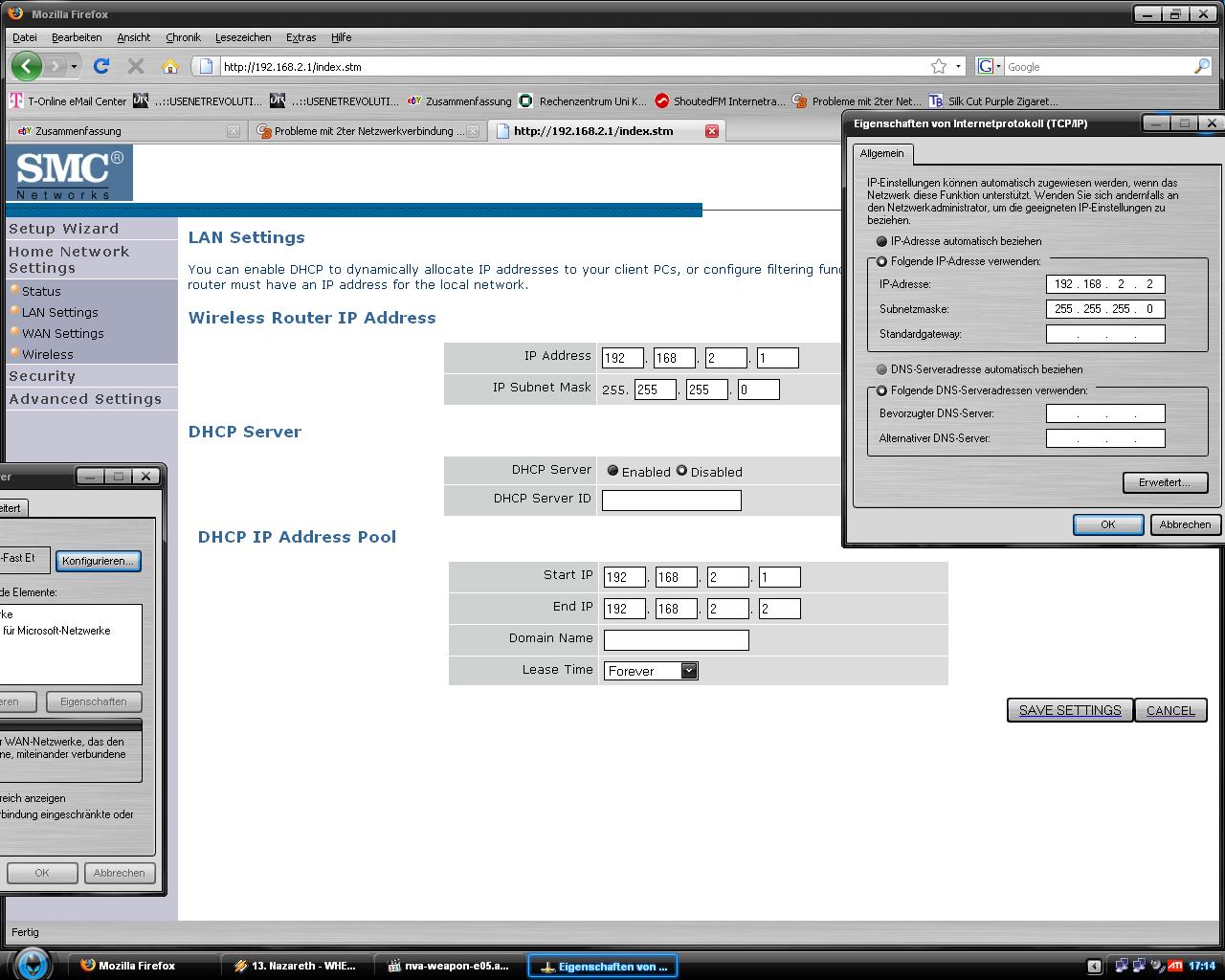 Von dort aus gehe ich zu einem weiteren W-Lan Router (SMC) der mir selber gehört und den ich auch mit einem Verbindungspasswort versehen habe, sodass nur ich darauf zugreifen kann.