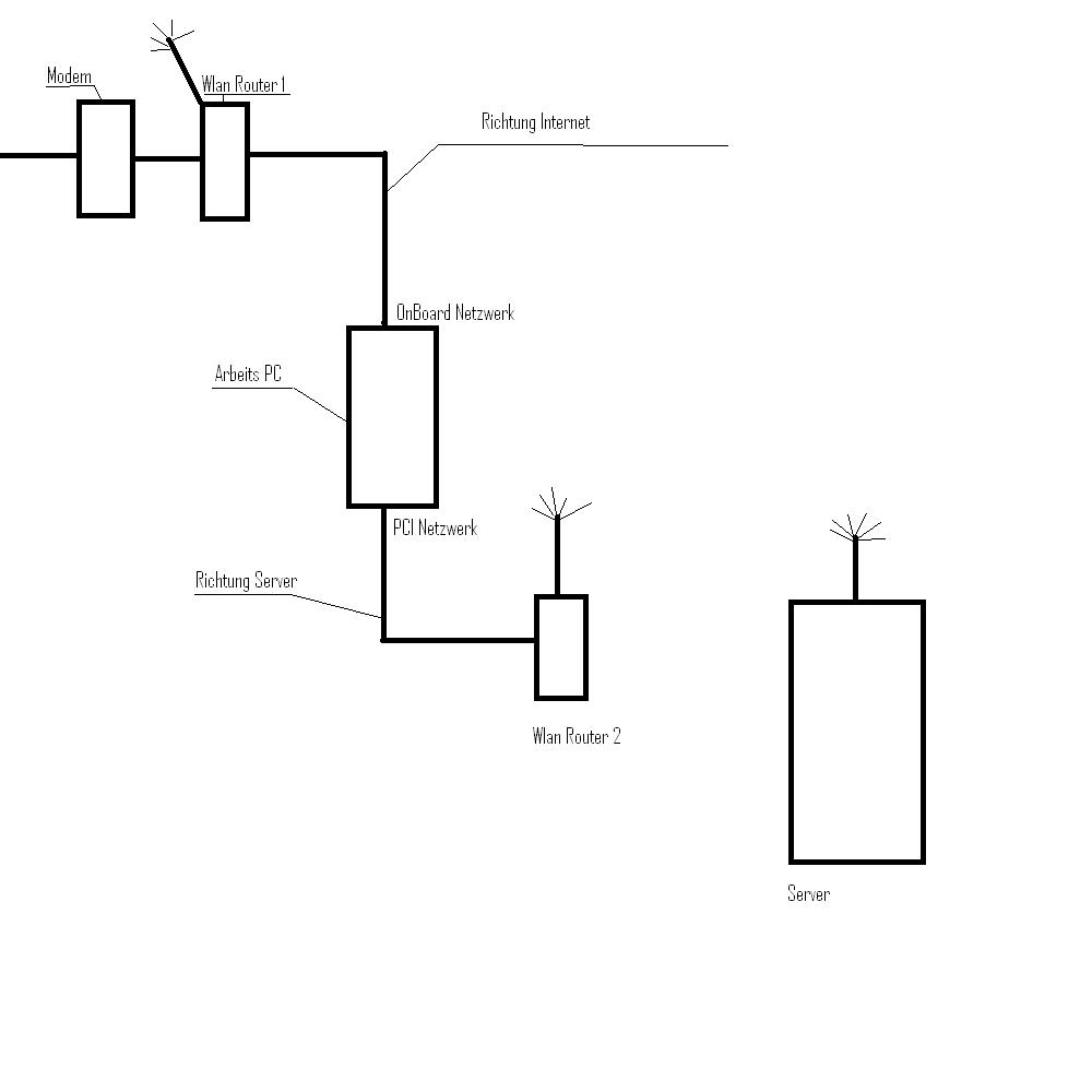 Das Problem besteht nun darin, das wenn ich Beide Verbindungen aktiv habe, geht die verbindung zum Server 1a, die aber zum Internet bricht sehr oft ab bzw dauert ewig bis eine Seite aufgebaut ist (ca so wie als wenn man gerade eine Seite aufbaut und das Modem neustartet.Verbindung besteht aber sporadisch).