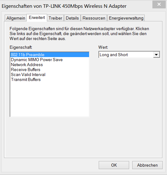 Bei meinem Wlan-Adapter habe ich gar nicht soviele Einstellmöglichkeiten.