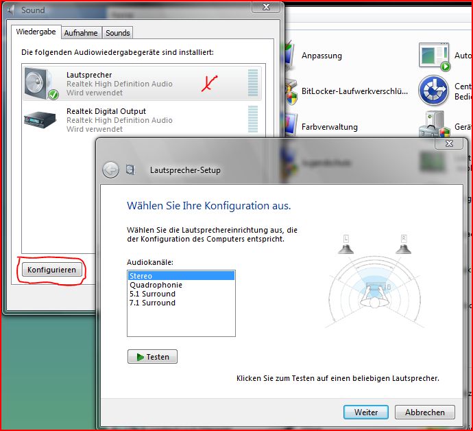 Nun, mein Problem ist, das wenn ich Unter Windows Vista zb. Musik höre, ich aus den hinteren Boxen nur abgehacktes höre, so als ob dort die Hälfte an Frequenzen einfach fehlt unter XP hab ich dieses Problem nicht. Ich hab auch schon mehrmals neuinstalliert und alle möglichen treiber versionen des Realtek HD Audio Treiber ausprobiert (angefangen von 1.73 bis zum neuesten 1.77). Unter XP funktioniert es mit allen treiber versionen problemlos, unter vista (32 bit und 64 bit) mit keiner.