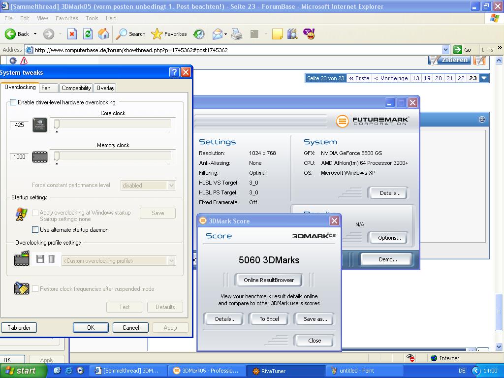 Nach zahlreichen Tests mit 3D-Mark kamen ständig niedrigere Werte als mit meiner alten 6600 GT raus