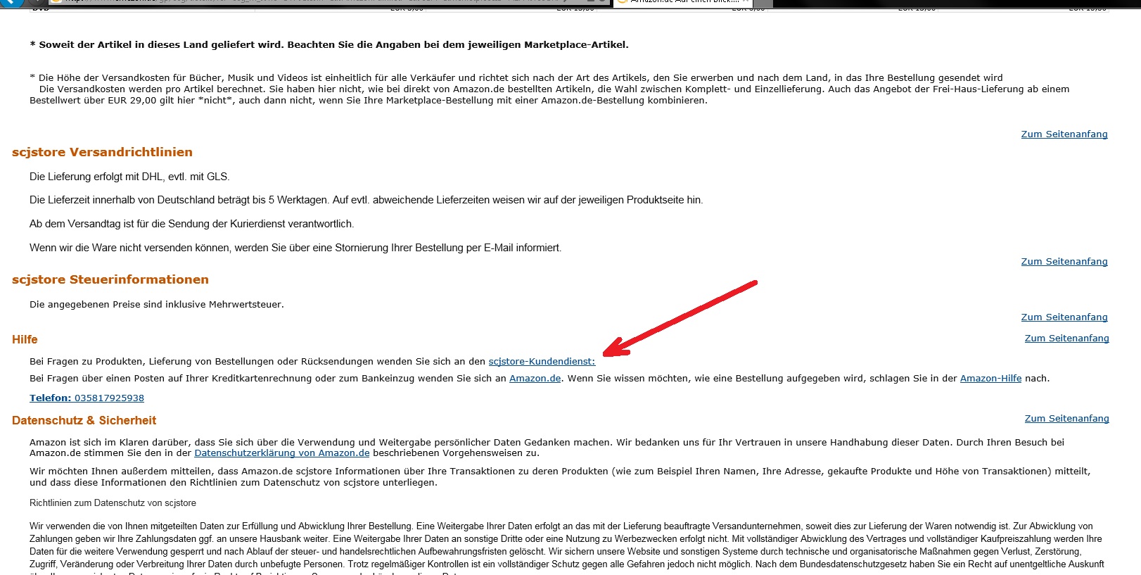 Verkäufer über das "Hilfe: Verkäufer kontaktieren" Formular