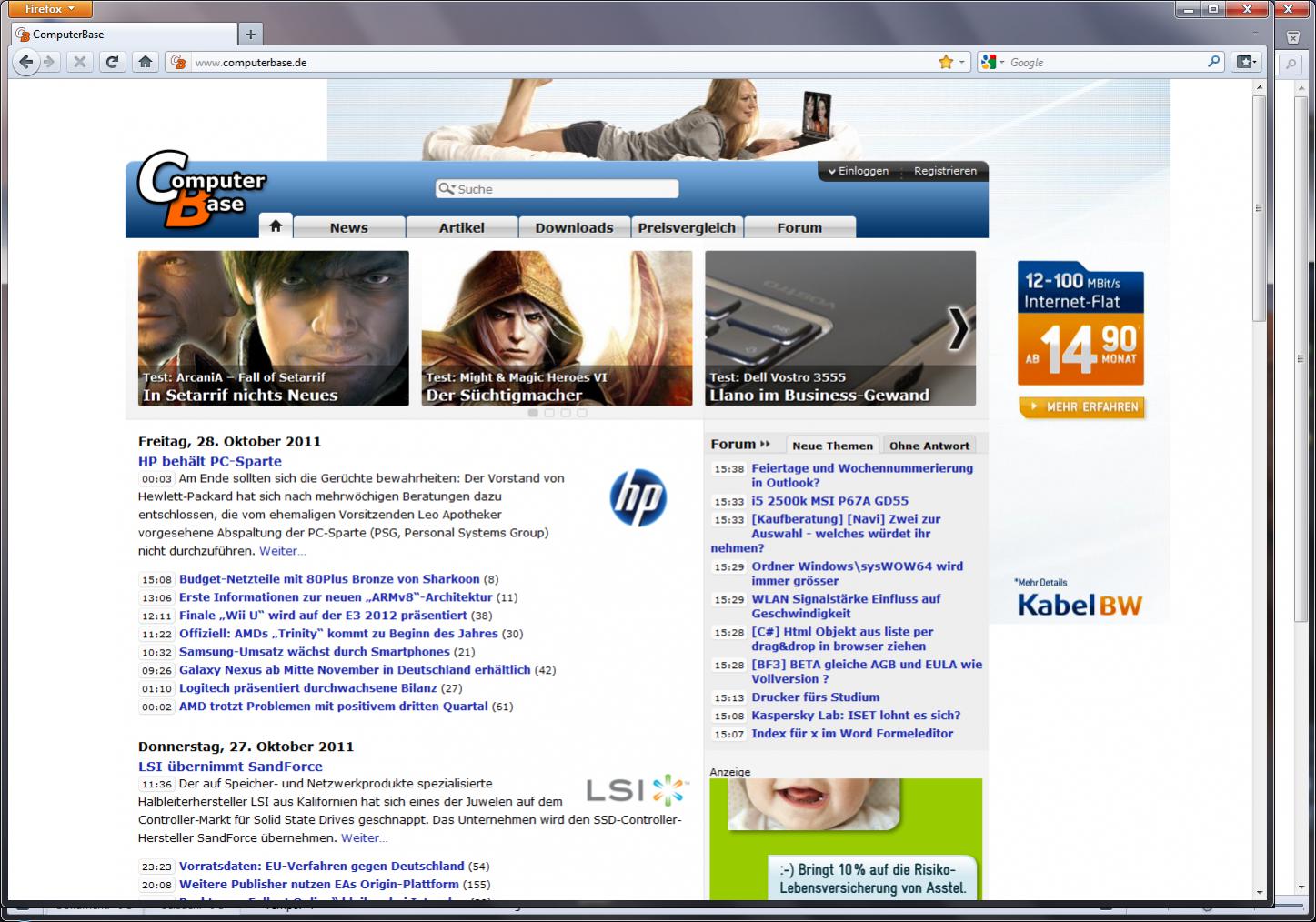 Ich hab seit ca zwei Tagen ein Problem mit der Werbung zwischen den Forenbeiträgen und Downloads auf der Startseite, ich habe beim laden der Startseite oft plötzlich ne weiße Seiten, mit der Werbung oben links (URL wird weiter ganz normal mit computerbase.de angezeigt).