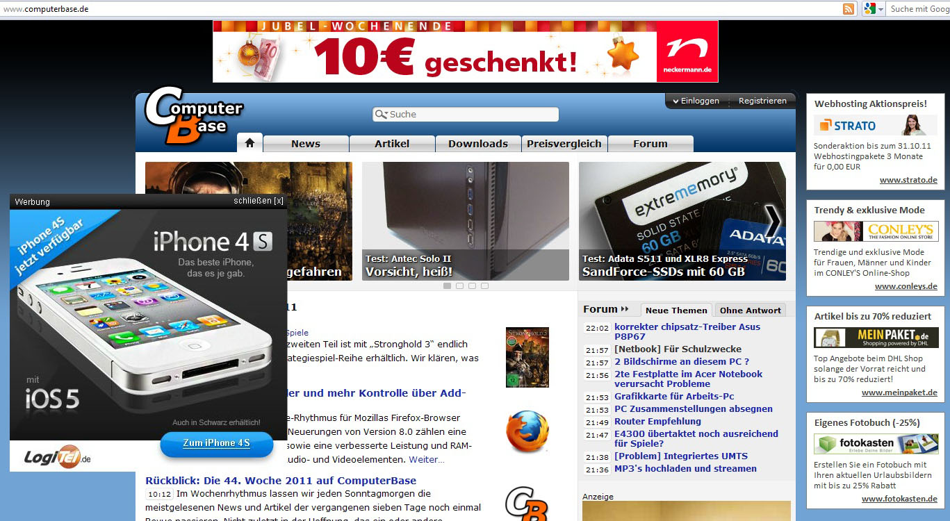 Das musst du schon präzisieren, gewollt sind max. 3 mal am Tag der iPhone 4S-Layer und ich weiß nicht wie oft der Anno 2070-Layer.Das ich aber als angemeldeter User mehrmals am Tag auf der News-Seite ein Popup habe, finde ich doch etwas zuviel des Guten.