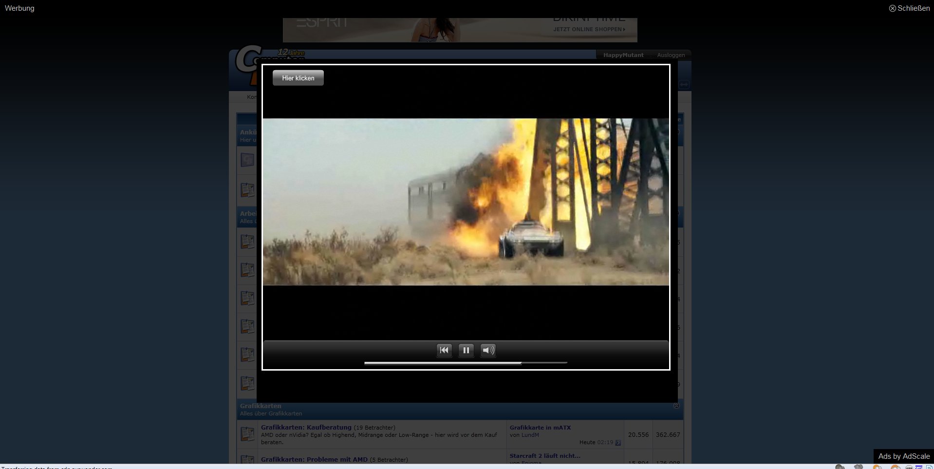 Jan schrieb:Es gilt auch weiterhin: Vollbild-Video-Werbung (d.h. Anzeigen, die den kompletten Browser in transparentem Schwarz überlegen und in der Mitte ein Video laufen lassen), werden an eingeloggte Mitglieder nicht ausgeliefert. Sollte es doch dazu kommen, dann ist das ein Fehler, der hier gerne jederzeit gemeldet werden kann.