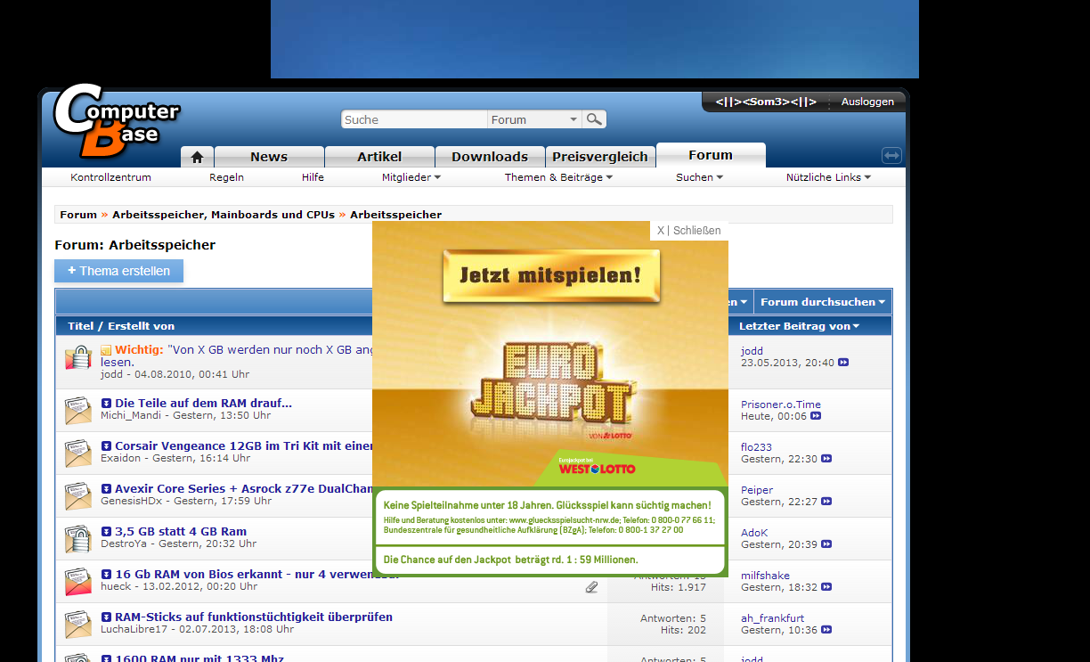 Diese Layer-Anzeige ist größer als die typische Layer-Anzeige, aber grundsätzlich gibt es Layer-Anzeigen für nicht eingeloggte Besucher schon seit mehreren Jahren.Radde schrieb:Heute habe ich schon zum 3. mal einen bildschirmfüllenden Werbebanner auf der Startseite erlebt.
