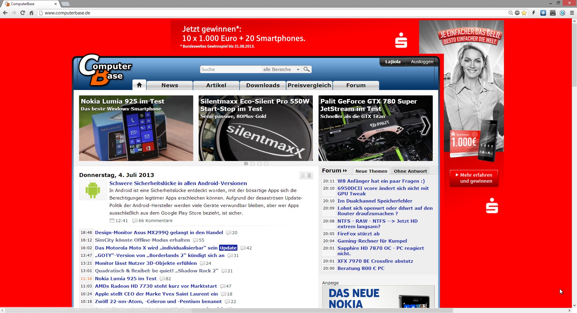 Seit gestern früh läuft auf eurer Seite eine Persil Werbung (rechter Banner). Sobald diese angezeigt wird bricht mein Brower komplett zusammen und alles wird extrem langsam. Da ich so ein Problem sonst nie habe bezweifel ich das es an meinem PC liegt.