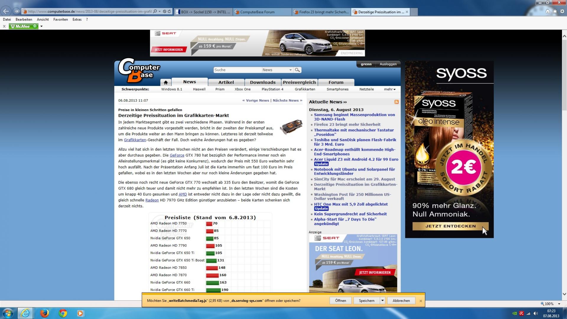 Gerade wollte ich auch nen screenshot posten. Aber es gibt ja hier schon recht viele mit der tollen Werbung. Man könnte fast schon "Ich sehe was, was du nicht siehst" draus machen. Oder suchen Sie Computerbase. ;-)