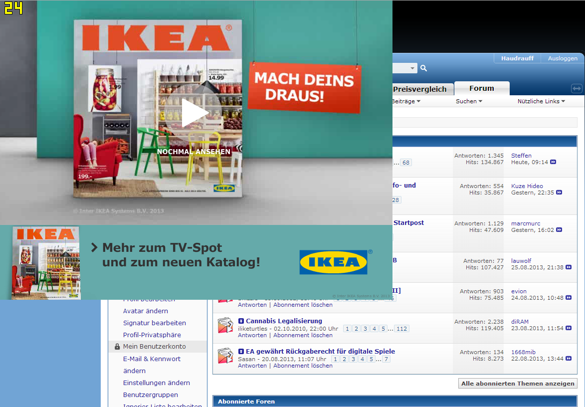 ist nur "blöd" wenn die werbung oben ist und man auf seine favos im browser klicken oder den tab wechseln möchte. dann spielt das ding immer kurz ton ab wenn man mit der maus kurz durch den bereich fährt