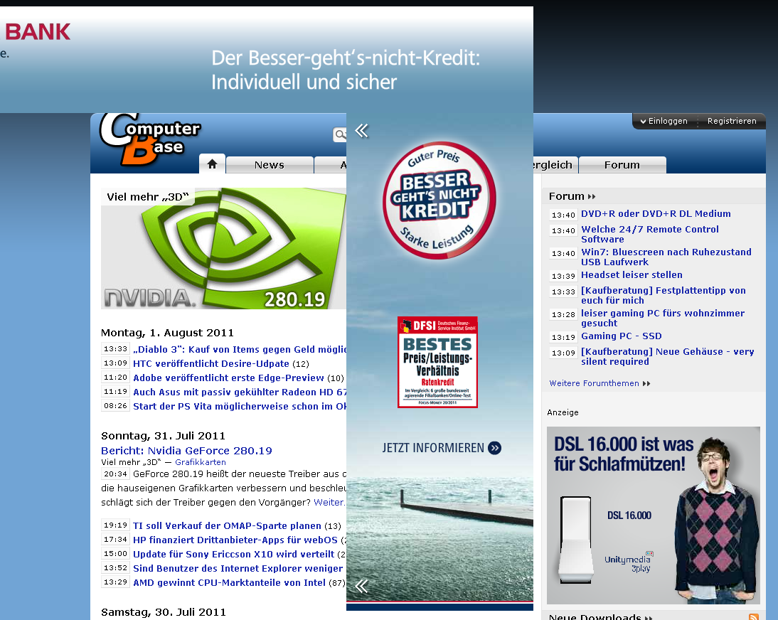 Das sich CB mit werbung finanziert, ist in Ordnung, heute allerdings gab es die Werbung von der Targobank welche mir den halben Text verdeckt hat.